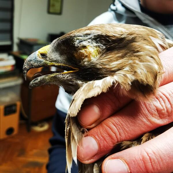 - Kandže i noge su zgrčene tako da se ptica teško kreće i ne može da drži plen. Ptica je veterinarski sanirana i nadamo se da će nakon oporavka i poboljšanja stanja ptice moći da se uradi operacija krila. Hvala dobrim ljudima koji su je pronašli pored puta u blizini sela Mozgovo i koji su je spasili i doneli kod nas. Mi dajemo sve od sebe kao i naši veterinari da se njeno stanje poboljša koliko je moguće, objašnjavaju iz ovog udruženja.