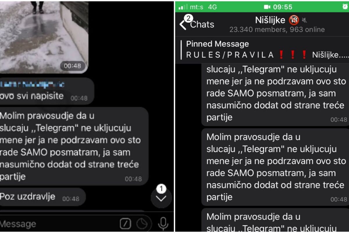 Molim pravosuđe da u slučaju ,,Telegram'' ne uključuju mene jer ja ne podržavam ovo što rade, SAMO posmatram, ja sam nasumično dodat od strane treće partije.