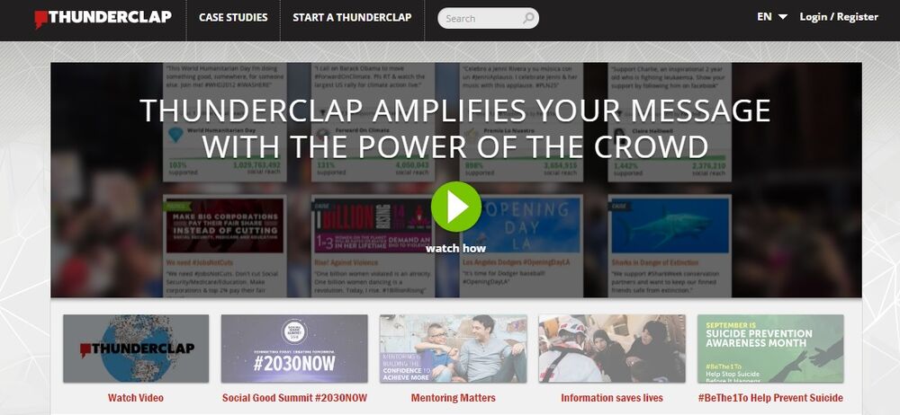 Sajt Thunderclap je vrlo poseban sajt. On za cilj ima da pruži ljudima šansu da zajedno prenesu i rašire neku važnu, i najčešće humanu poruku.