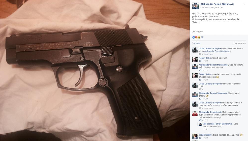 Međutim, pištolj je po svoj prilici polovan, zapravo "remontovan"!? Kako laureat kaže na svom FB profilu: