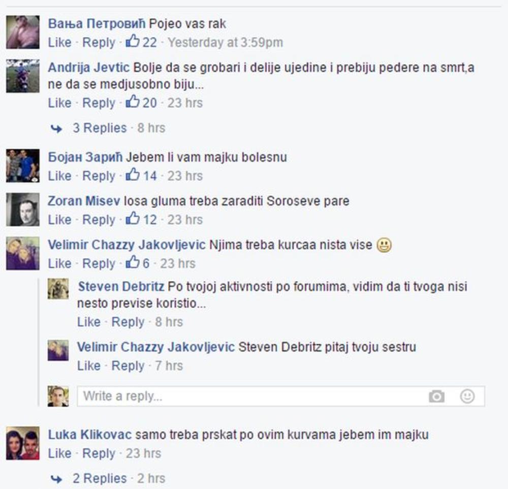 Ono što je i dalje zastupljeno u Srbiji u komentarima ispod ovakvih tekstova jeste da se osobama LGBT populacije upućuju najstrašnije uvrede, od toga da su bolesnici, do toga da ih treba ubiti.