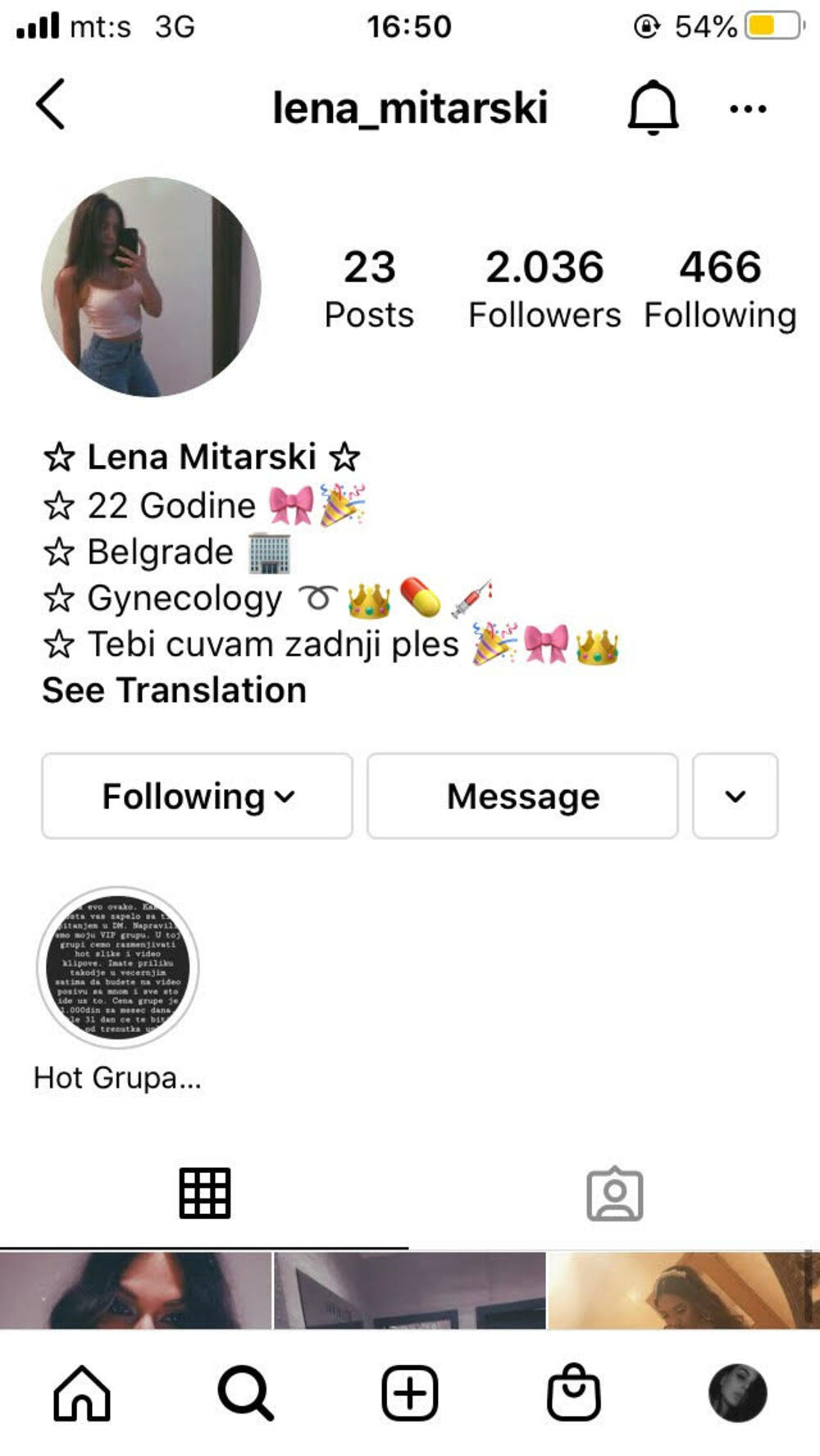 Naime, 12. marta je naša sagovornica dobila poruku sa sadržajem koji ju je prilično uznemirio, i to ne bez razloga. Preko prijatelja je saznala da je na društvenoj mreži Instagram napravljen lažni profil pod imenom lena_mitarski, ali su sve fotografije bile preuzete sa profila naše sagovornice. Da zlo bude veće, ovaj manijak tu nije stao već je postavljao i fotografije na kojima je pisalo da će se u Hot live uključivati naša sagovornica i slati svoje eksplicitne fotografije.