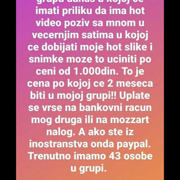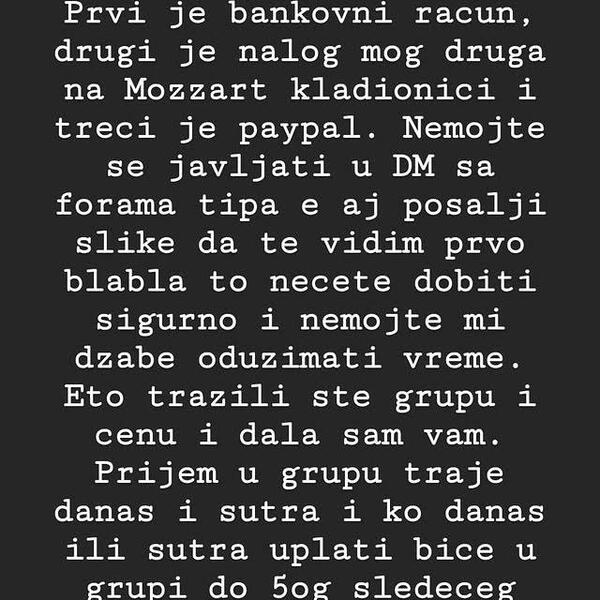 Interesantno je da je Instagram profil naše sagovornice od samog starta zaključan te se samim tim sužava izbor osoba koje su mogle ovako nešto da urade.