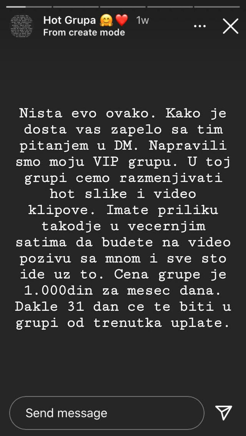 Na sreću, ovaj lažni profil je ugašen, ali je ceo ovaj horor i te kako ostavio traga na našu sagovornicu. Kako sama tvrdi, ubeđena je da iza ove priče stoji muškarac s obzirom na to da se pominje aplikacija Telegram, a činjenica je da su članovi iste pretežno muškarci.