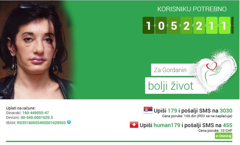 Ovom prilikom Vas naš portal poziva da pomognete Gordani na bilo koji način. Kako ko i koliko može. Dovoljno je propatila i izgubila. Dosta je onih koji su okrenuli glavu kada su je sretali na ulicI.