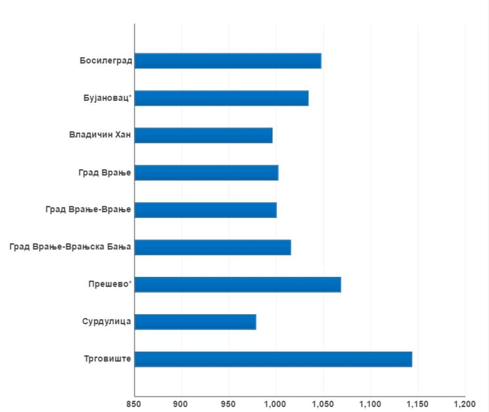 U Vranju izjednačeno, u Trgovištu muškaraca u proseku mnogo više (na 1.000 žena - 1.143 muških stanovnika)