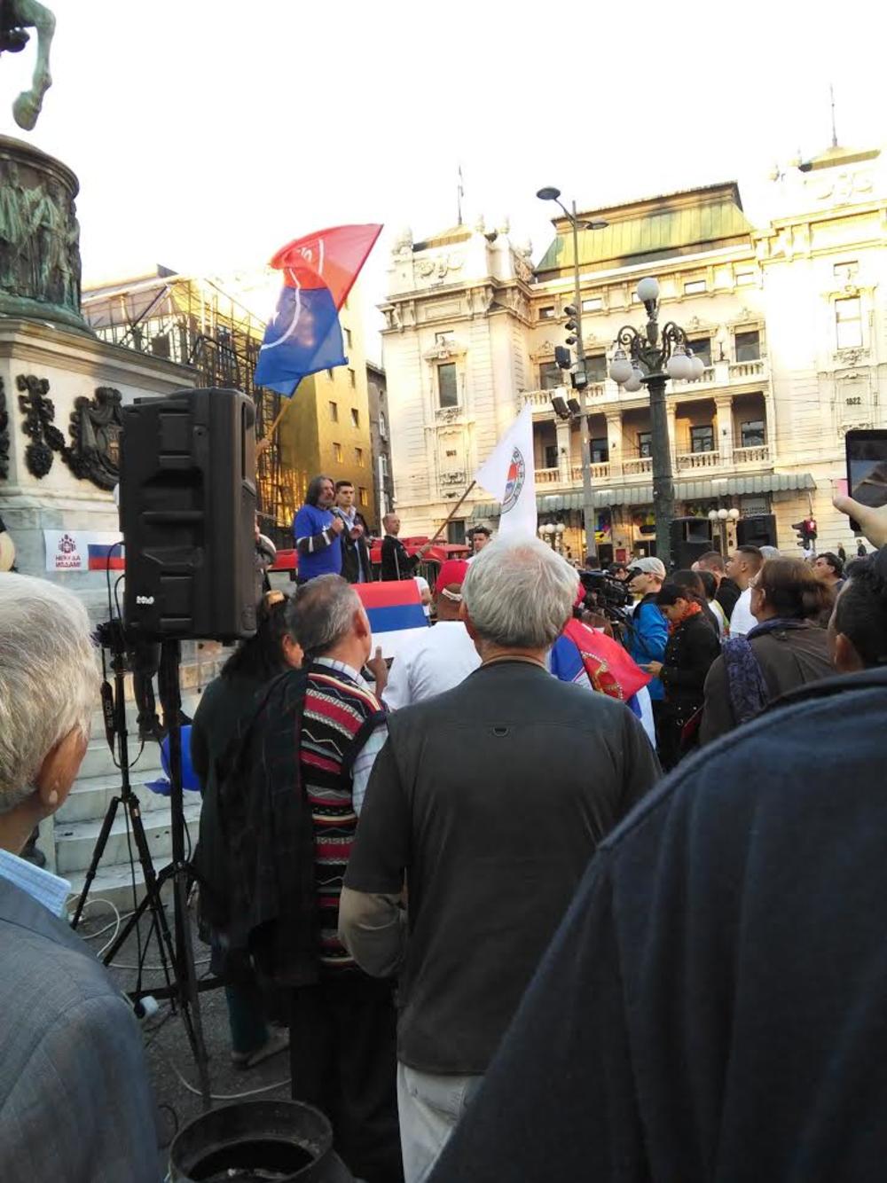Na Trgu Republike se trenutno nalazi veća grupa ljudi koja protestuje zbog Gračanice, ali i zbog sutrašnjeg referenduma u Republici Srpskoj.