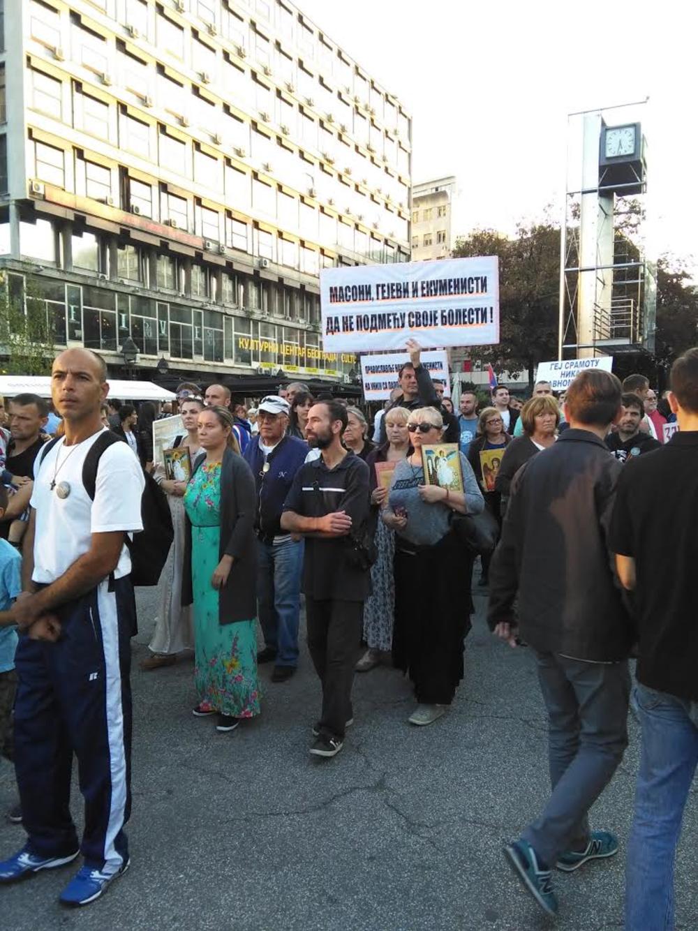 Veća grupa građana okupila se na Trgu Republike zbog sutrašnjeg referenduma, ali su prisutni i plakati protiv homoseksualaca