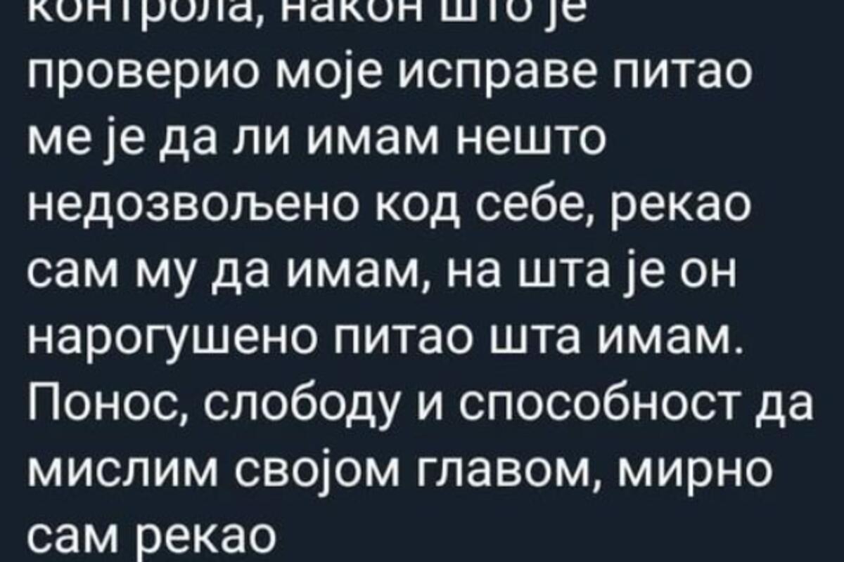 ZAUSTAVIO ME POLICAJAC I PITAO ŠTA IMAM KOD SEBE! Status ovog SRBINA šeruju svi po društvenim mrežama