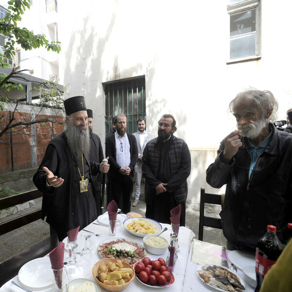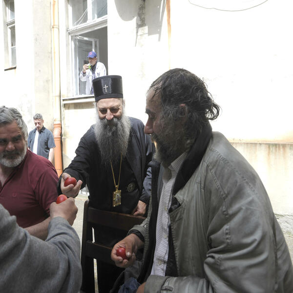 Patrijarh srpski Porfirije proveo je Uskrs najpre sa beskućnicima sa kojima je zajedno ručao u crkvenoj narodnoj kuhinji, a nakon toga je podelio pakete bolesnim mališanima u Univerzitetskoj dečjoj klinici "Tiršova".