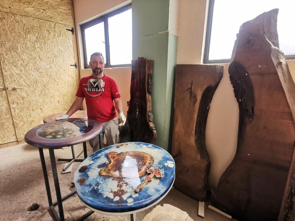 Ako zakoračite u Lukinu radionicu, zaboravićete brzinu vremena i moderne tehnologije i ostaćete zarobljeni u lepoti prirode, izvan svakog vremena. On pravi unikatne stolove od kuvane orahovine, a njihove ploče su prava remek dela.