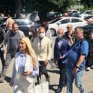 Đanluka je sleteo u Beograd da primi imunizaciju privatnim avionom, a na sebi je nosio belu košulju i sako i dočekao ga je zamenik gradonačelnika Beograda Goran Vesić.