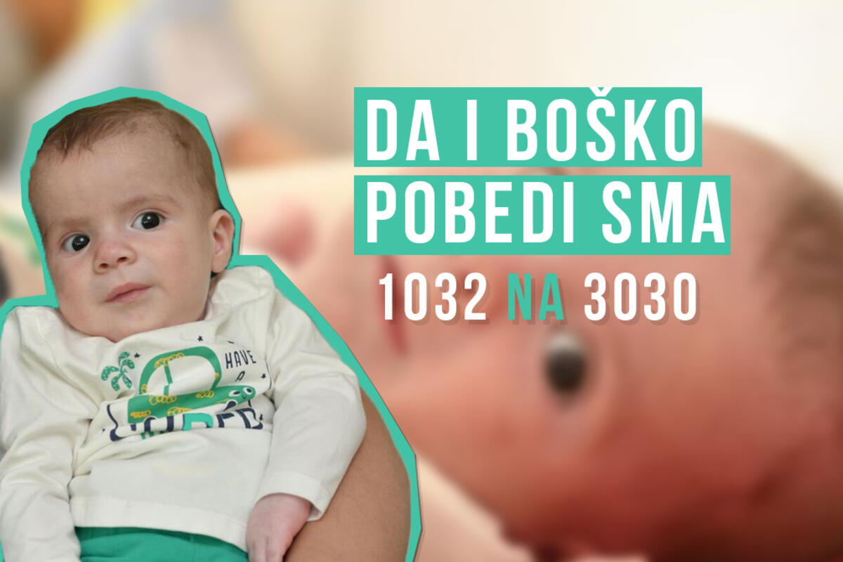 - Naš mali drugar Boško @1032na3030, gubi akt gutanja pa ga roditelji hrane uz pomoć sonde. Slabljenjem mišića uzrokovano bolešću, Boško gubi moć gutanja. Moramo da požurimo, svi zajedno. Da roditelji obrišu suze, a da mi svi zajedno, opet pokažemo koliko smo veliki. 1032 na 3030
