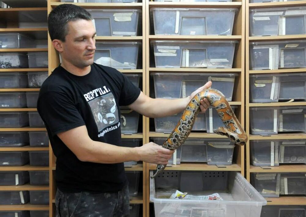 Uglavnom gaji zmije iz porodice pitona i boa koje spadaju u ugrožene vrste pa mora da ima sve potrebne dozvole za njih.