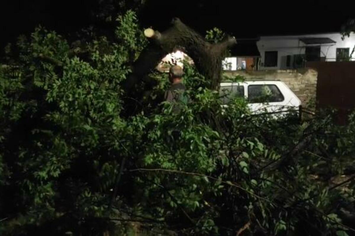 Drvo je puklo na oko tri metra od zemlje, a njegova velika krošnja se srušila preko automobila. Pritom je oštetila i drugo drvo u blizini, piše "013 Info".