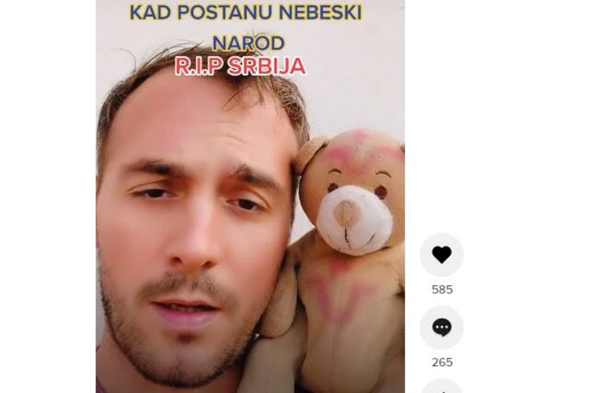 - Ja i Rakica (pretp. plišana igračka) nemamo ništa protiv Srba. Dapače, Srbi su dobri, ali kad su hladni i u ležećem položaju, kad ćute - rekao je Kristijan, koji je na svom videu stavio i natpis "Kad postanu nebeski narod, R.I.P Srbija".