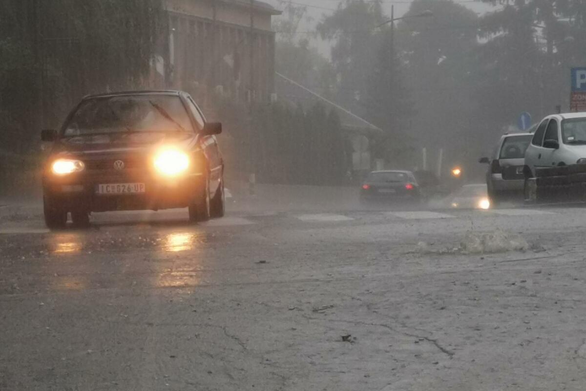 Jaka kiša je padala i u Lazarevcu, a vetar je lomio granje drveća.