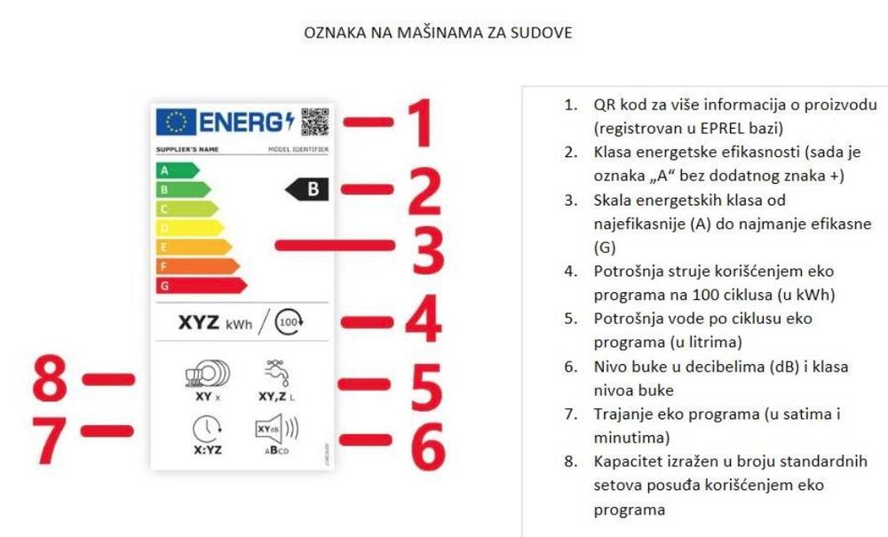 Nove nalepnice za energetsku klasu prozivoda imaju i QR kod u gornjem desnom uglu, pomoću kojeg građani mogu saznati više informacija o proizvodu iz zvanične Evropske baze podataka o energetskim oznakama na proizvodima – EPREL. Proizvodi koji se nalaze na našem tržištu moraće da zadovolje zahteve za označavanjem koje su na snazi u Srbiji, ali ne moraju nužno biti registrovani u EPREL bazi podataka.