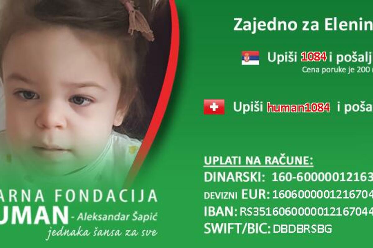 Eleni možete pomoći slanjem sms poruke 1084 na 3030 ili uplatom na žiro račun fondacije Budi human na neki od žiro računa: