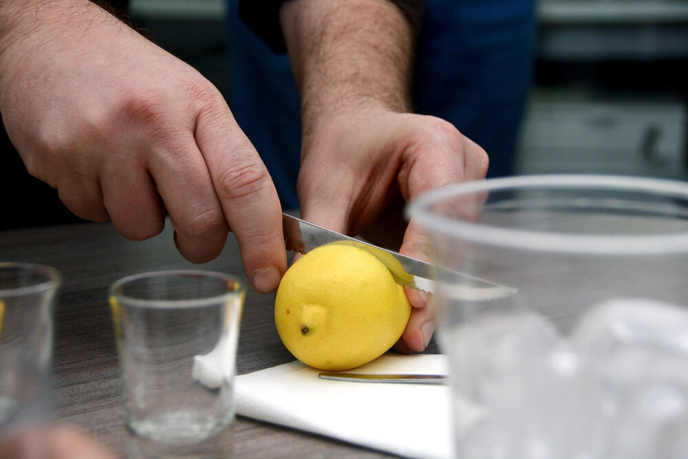 U čašici se naspe rakija, "navrneš" je i odjednom popiješ, odmah zatim poližeš so koju si posipao po levoj ruci, a onda pojedeš i malo limuna