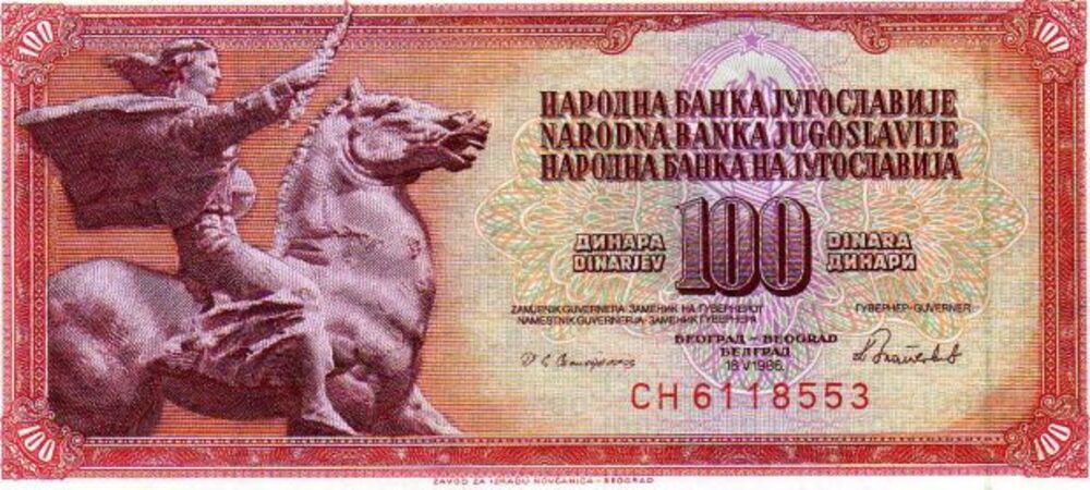 Mnogi se i dan danas rado sete straih novčanica iz bivše države, ali jedna od njih budi posebne uspomene. Naime, radi se o novčanici od 100 dinara ili popularnoj "Crvenoj", na kojoj je bio nacrtan čovek na konju, odnosno spomenik u Njujorku koji se nalazi pred ulazom u pred ulazom zgrade Organizacije Ujedinjenih naroda.