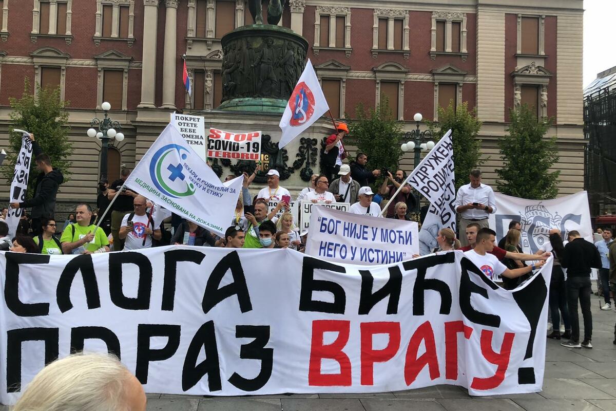 Danas se u samom centru Beograda okupila nekolicina ljudi koja protestuje protiv mera za suzbijanje koronavirusa.