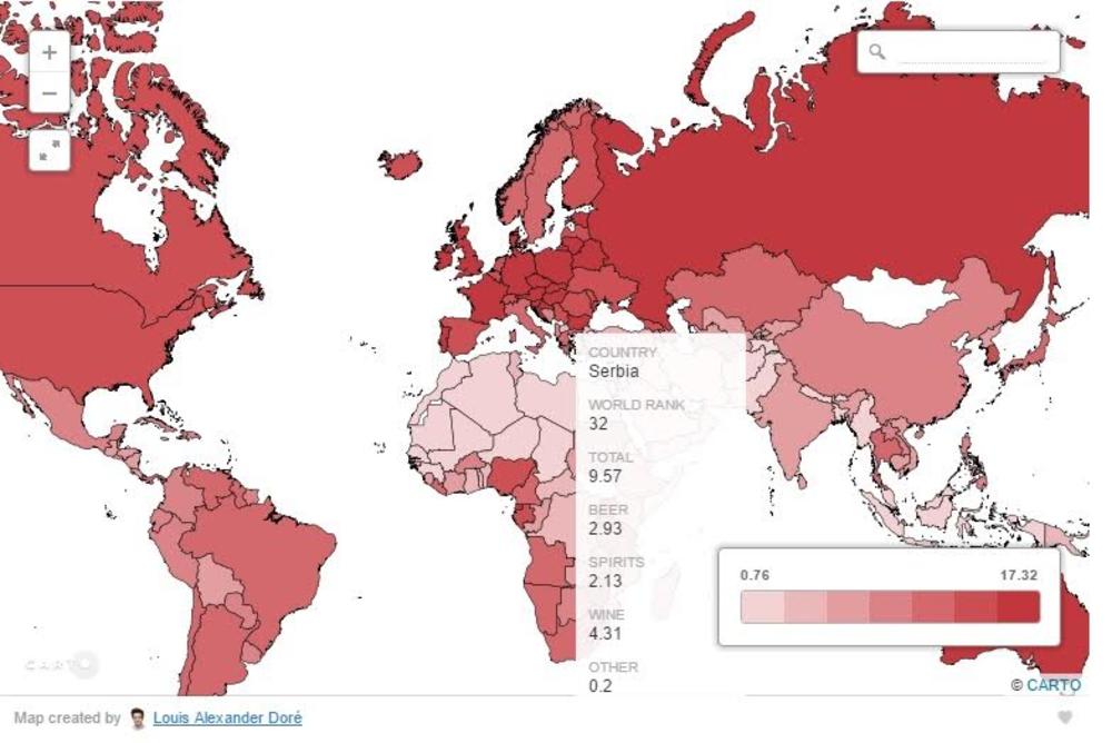 Ovo su rezultati istraživanja Svetske banke i Svetske zdravstvene organizacije, iz kojih se može zaključiti da su građani evropskih zemalja najveći konzumenti alkoholnih pića u odnosu na svetski prosek.
