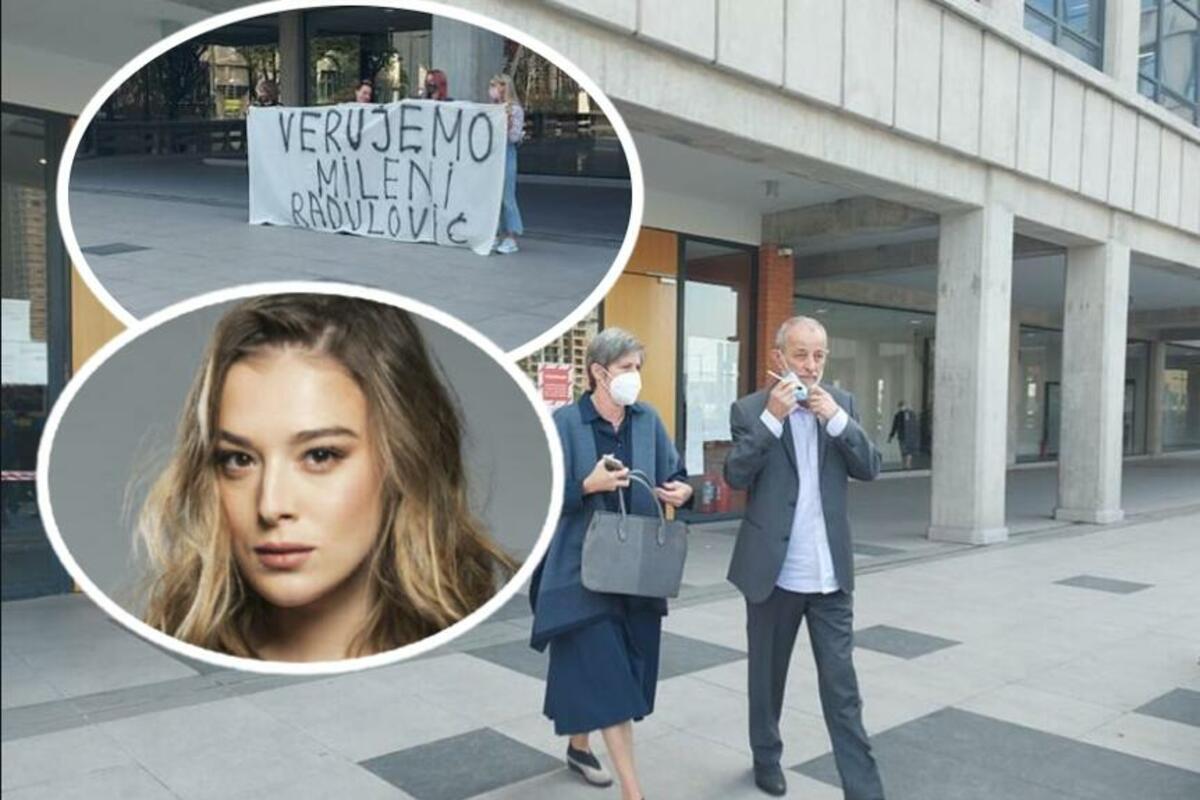 Ispred Suda u Beogradu skupila se grupa ljudi koja je raširila transparent uz natpis: Verujemo Mileni Radulović!