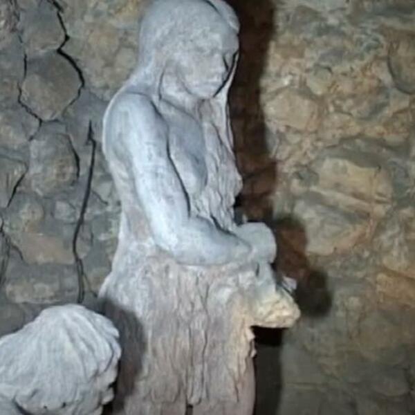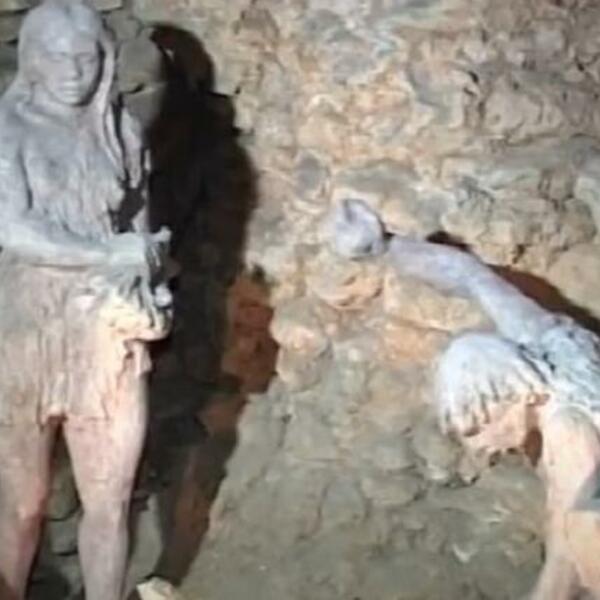 Figure koje su izrađene od poliesterske smole nalaze se u centralnom delu pećine, smeštene na 273 metara nadmorske visine. Na taj način je prikazan pračovek i njegova porodica. On je prikazan kako loži vatru i glača oružje, njegova supruga nosi drva, dok jedan sin izrađuje alat od kamena, a drugi je spreman da krene u lov.