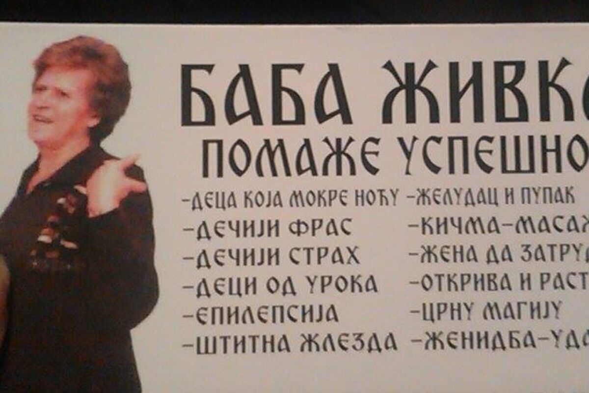 Baba Živka opšte je poznata u svom selu, ali i šire. Naime, ova "dobročiniteljka" navodno pomaže kod raznih problema. Kod dece koja mokre noću, dečijeg straha, uroka, otkriva i skida crnu magiju i još mnogo stvari.