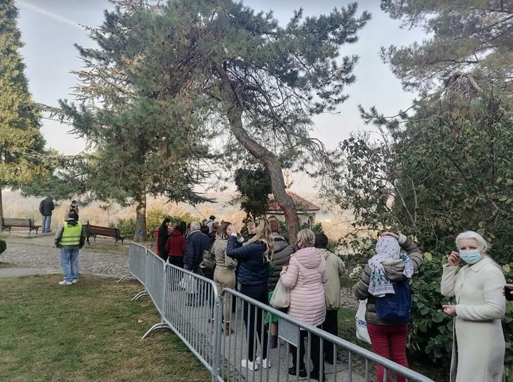 Kako smo na istoj lokaciji bili i prošle godine, primetili smo da je ove godine znatno manji red ispred kapele. Služba je održana, a ljudi su u redu čekali da uđu u crkvu.