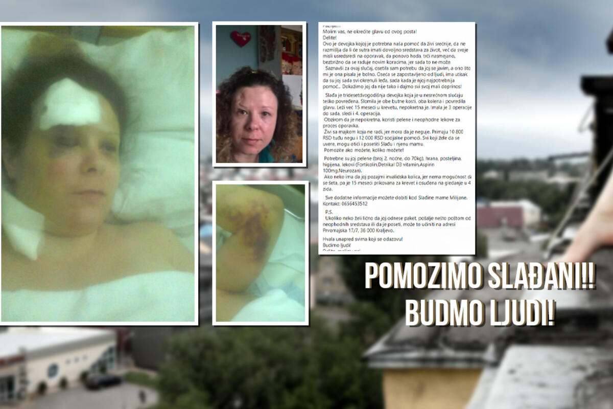 Po izlasku iz bolnice, Slađana je prikovana za krevet, osuđena na četiri zida i vršenje nužde u pelene. Na svakih mesec dana mora da snima kosti, koje, kako doktori navode, slabo zarastaju.