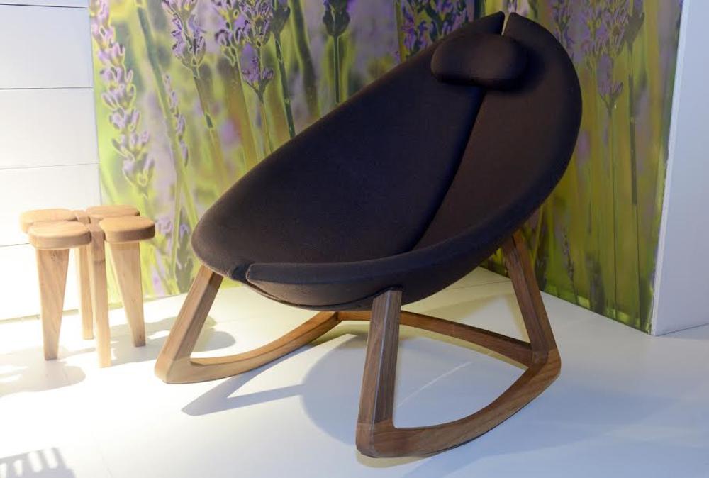 Na istom štandu sam ugledala jedno veliko zrno kafe. Ispostavilo se da je to stolica na ljuljanje. Napravljena je od orahovog drveta i vune. Puna cena je 1.515 evra, sa popustom 1.210 evra.