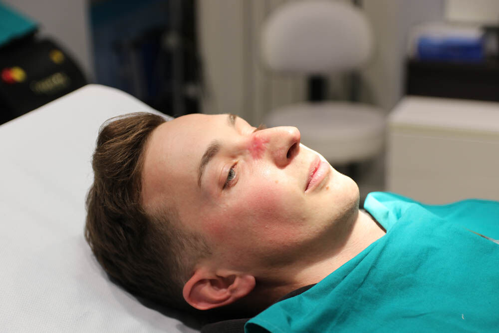 U pitanju je muškarac Slavko C. (26) kome je Olgica u avgustu mesecu bukvalno spalila nos takozvanim "Plasma penom", pa je bio prinuđen da spas potraži u Eterna centru kod doktorke Tanje Radenkov Medenice, specijalizanta plastične, estetske i rekonstruktivne hirurgije.