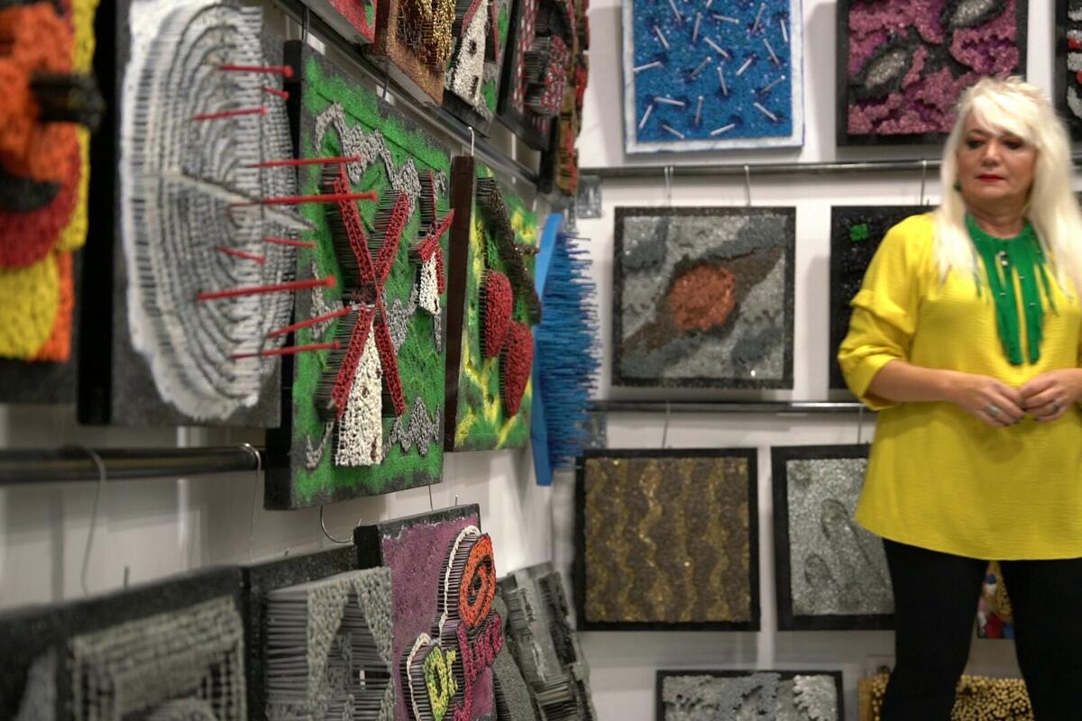 U pitanju su, kako Meri tvrdi, metalni reljefi od eksera, tehnika kojom se ova umetnica jedina bavi u svetu