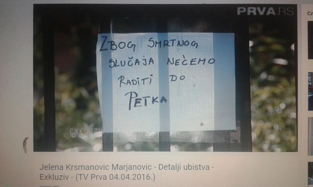 Ona dodaje da je svekrva Jelene Marjanović odmah, 4. aprila, stavila obaveštenje koje je zakačeno na kapiju, da neće raditi do petka.