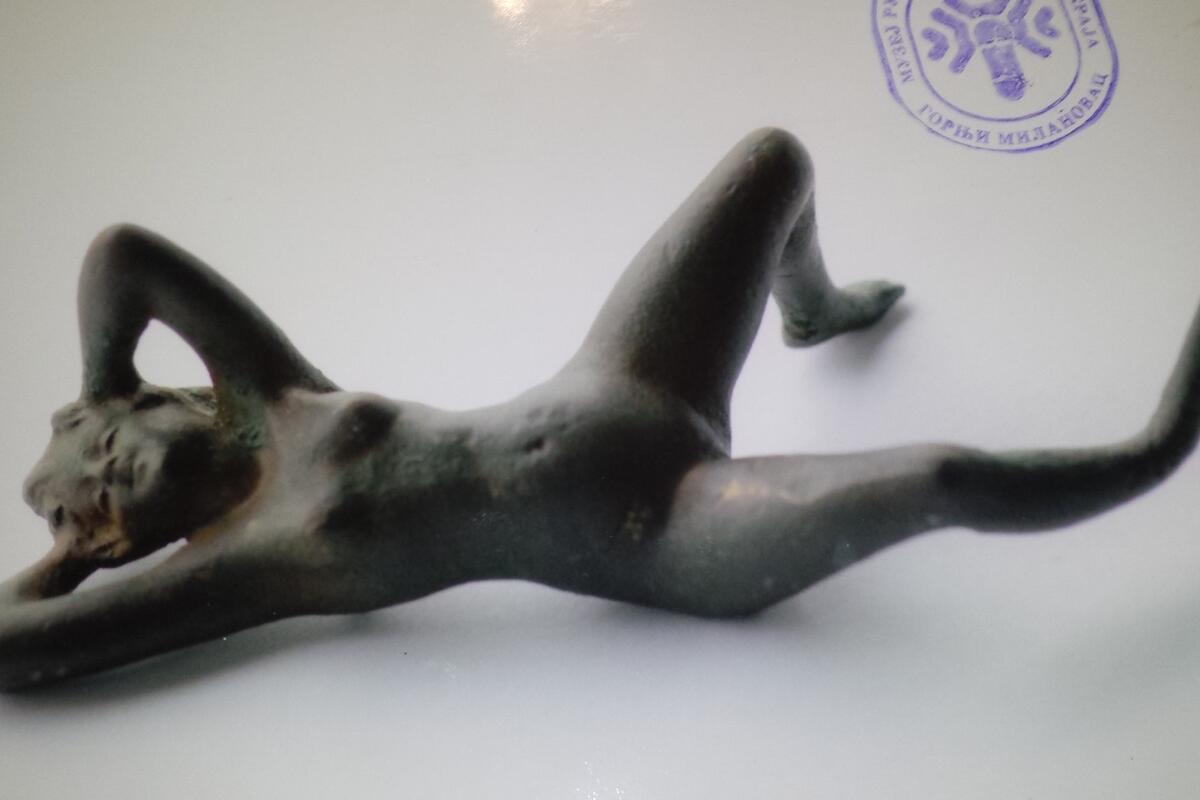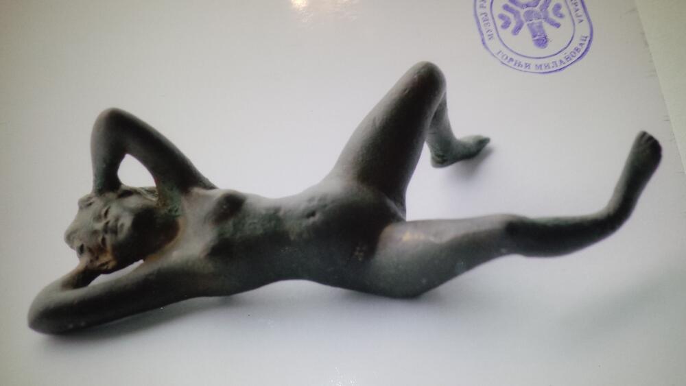 „U pitanju je malo skulpturno delo koje stane u ruku. Pronašao sam ga u kalupu, kad sam ga razbio unutra je bila figurina koja odaje erotski položaj žene. Ona potiče iz 113. godine, za vreme rimskih osvajanja ovih prostora i vladara Septimija Severa. Pravila se u našem današnjem kraju u skladu sa tadašnjim umetničkim trendovima. Mala je, negde oko 100 grama teška i 10-ak centimetara dugačka“, kaže za RINU Mirković.