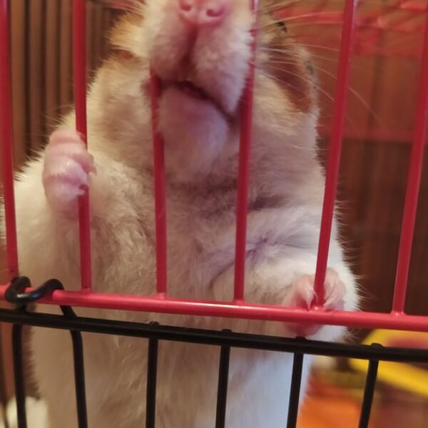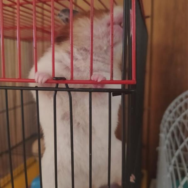 Retko kad izlazi, samo kada treba da uzme hranu, ali moja borba je jača. Od sena i piljevine gradim brane, nadograđujem kuću. Kada mi čiste kavez, sve mi izbace, ali me to ne sprečava da gradim iznova, i iznova...