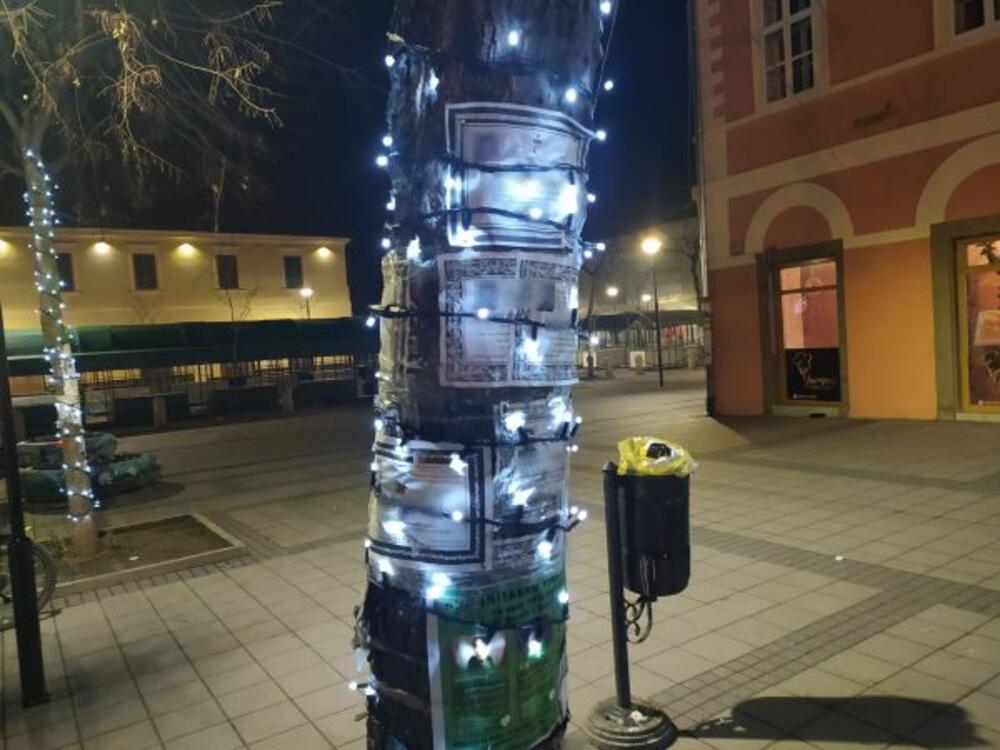 Upravo tu se nepažnjom radnika koji postavljaju ukrase, ili iz nekog drugog razloga, dogodio ozbiljan propust. Na drveću ispred Gradske kuće je postavljena novogodišnja rasveta, što na prvi pogled zaista lepo izgleda. Međutim, kada se malo bolje pogleda, lako je uočiti da su praznične lampice postavljene preko umrlica koje su ranije postavljene na pomenuto drveće.