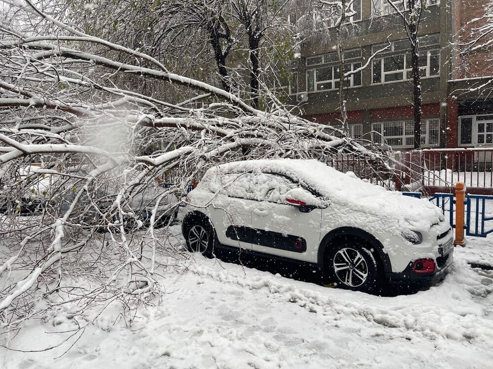 Drveće je juče padalo u celom gradu, gotovo da nije bilo mesta gde stablo nije palo na automobile, negde ga je sneg "počupao" iz korena