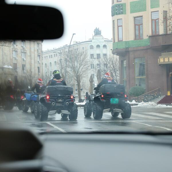 Da li ste nekad videli Deda Mraza na kvadu? Baš danas su Beograđani bili u prilici da vide kolonu kvadova koji su kružili gradom.