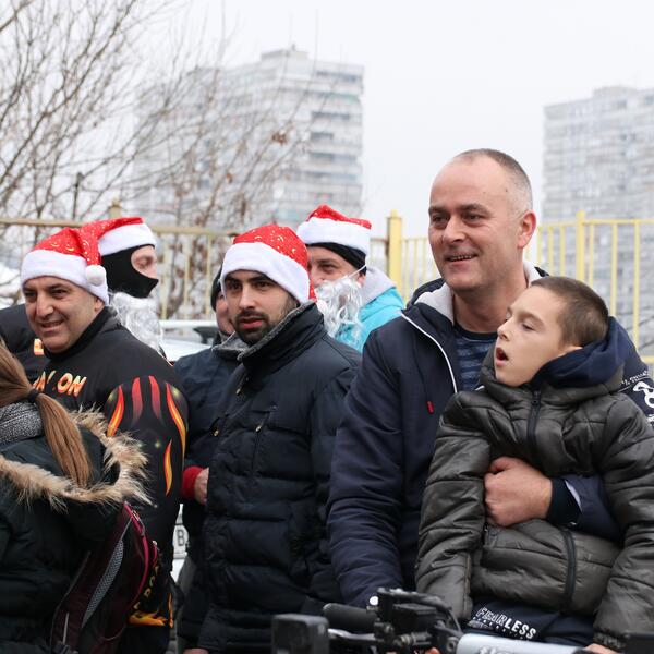 Povod za ovakav defile je humanitarna akcija prikupljanja novogodišnjih paketića, ovoga puta za decu obolelu od cerebralne paralize. Naime, danas su dečica iz osnovne škole "Miodrag Marić" na Voždovcu, koja je u sklopu bolnice za decu koja boluju od cerebralne paralize, dobili svoje paketiće. Ništa od ovoga ne bi bilo moguće da nije Maje Jovanić, Mine Milenković koje su iz organizacije "Dečiji svet", kao i momaka iz ATV kluba "Zmajevi" koji su zajedno organizovali ovu prelepu akciju.