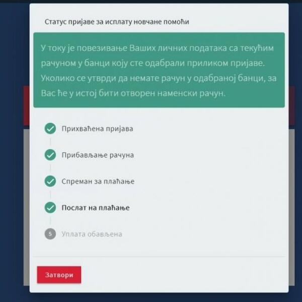 Po unošenju informacija imate mogućnost i da proverite podatke koje ste uneli, a po započinjanju isplate u svakom momentu možete proveriti i status svoje prijave.