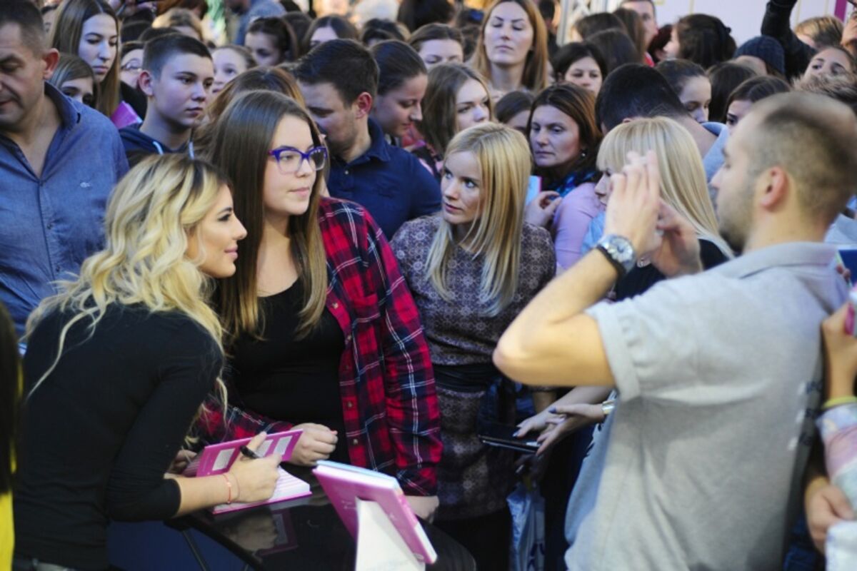 Gomila tinejdžerki i dece školskog uzrasta, gurali su se oko štanda kako bi i njihov primerak bio potpisan.