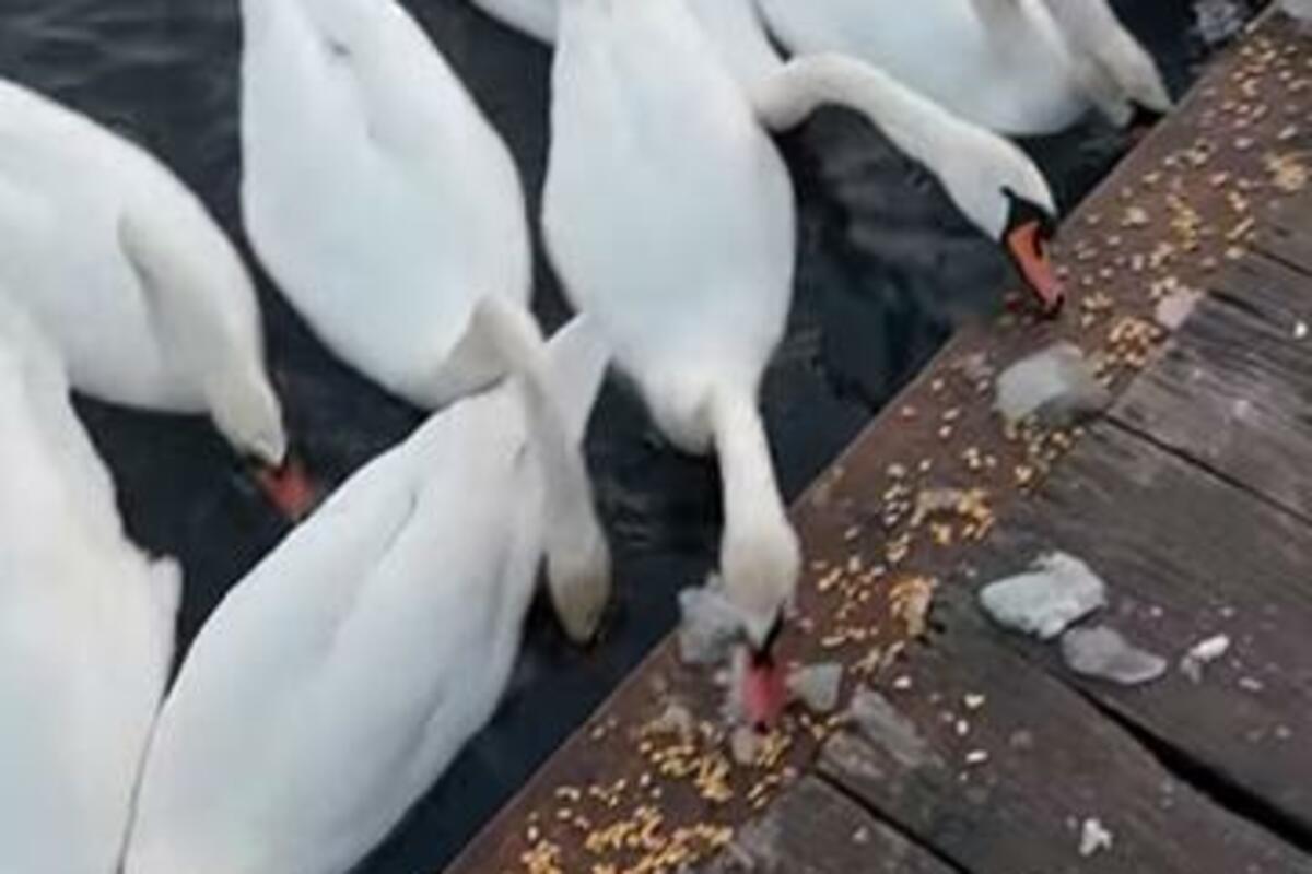 DETALJAN VODIČ KAKO NAHRANITI LABUDOVE TOKOM ZIME: Jadničci u okolini Borče traže ZRNO VIŠE! (VIDEO)