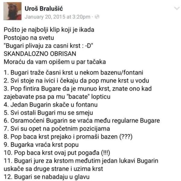 Plivanje za časni krst već neko vreme nije samo običaj kom se raduju vernici jer nekako iz godine u godinu to postane prilika da vidimo plejadu svakakvih likova, dok se sam događaj nadograđuje rarznoraznim novokomponovanim detaljima poput paljenja baklji ili pevanja patriotskih pesama.