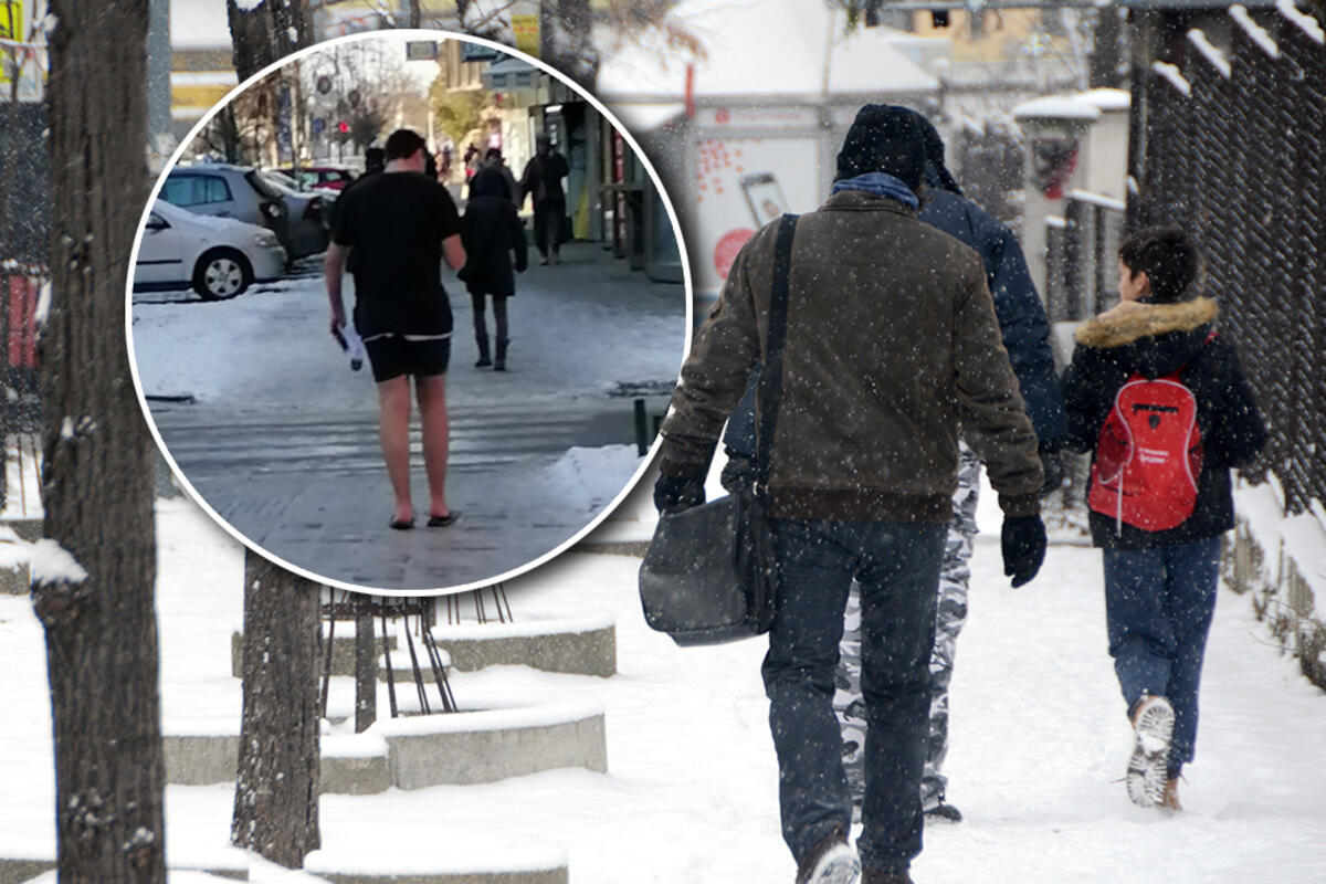 Po debelom minusu, snegu i ledu čovek je hodao u majici kratkih rukava, šortsu i papučama!