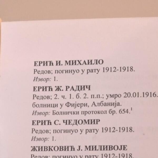 „Pred sam kraj rata pradedi je nastradao sin u Albaniji. Teško je to podneo, ali se nadao da ga ipak po povratku čeka puna kuća. Kad je stigao sa ratišta dočekala ga je još tragičnija vest - od tifusa mu je umrlo i svih pet sinova koji su ostali kući“, priča za RINU, Dragan Erić.