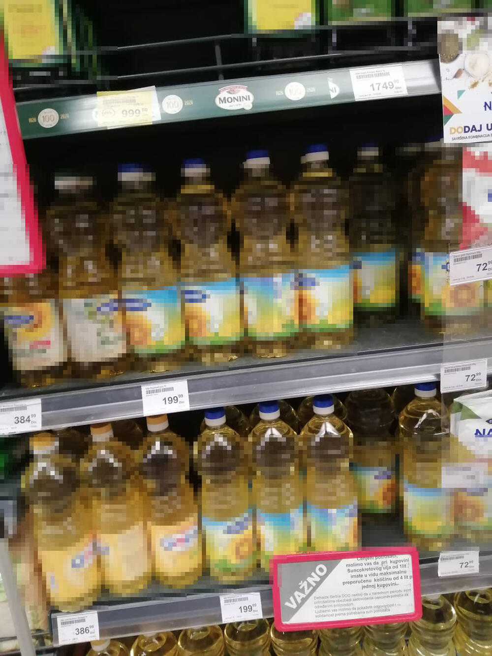 - Ulje takođe nije menjalo cenu u poslednjih 6 meseci, pa cena litre ulja iznosi - 199,99din