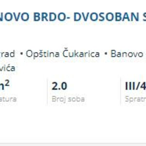 Kontaktirali smo vlasnicu dvosobnog stana na Banovom brdu, stan još uvek nije izdat, ali vlasnica je naglasila da ga ne izdaju na duži vremenski period.